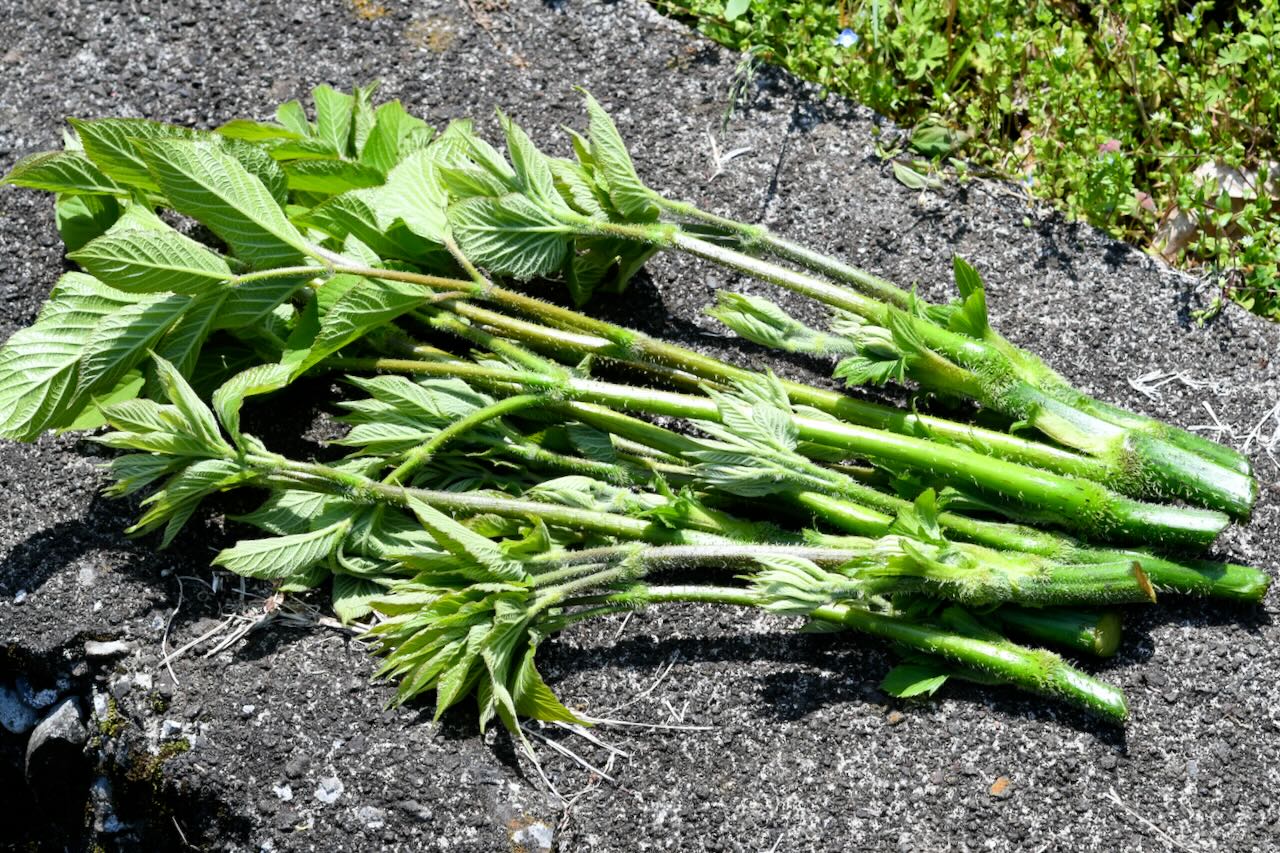 摘んだヤマウドです、前回は酢味噌和えでいただいたので、今回は天ぷらにしていただきます。