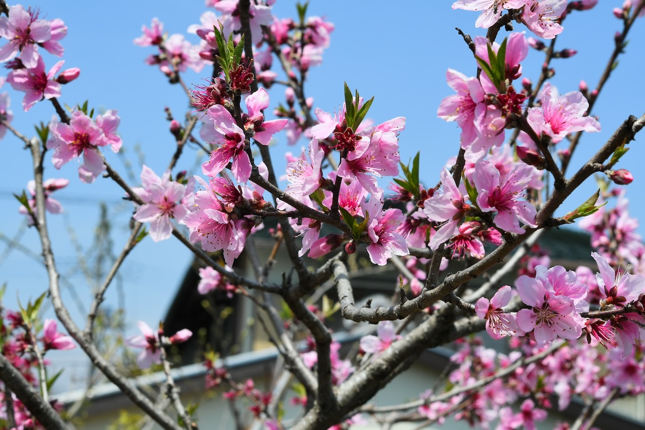 ずいぶん花びらが落ちていました。ここから桃の実がなります。