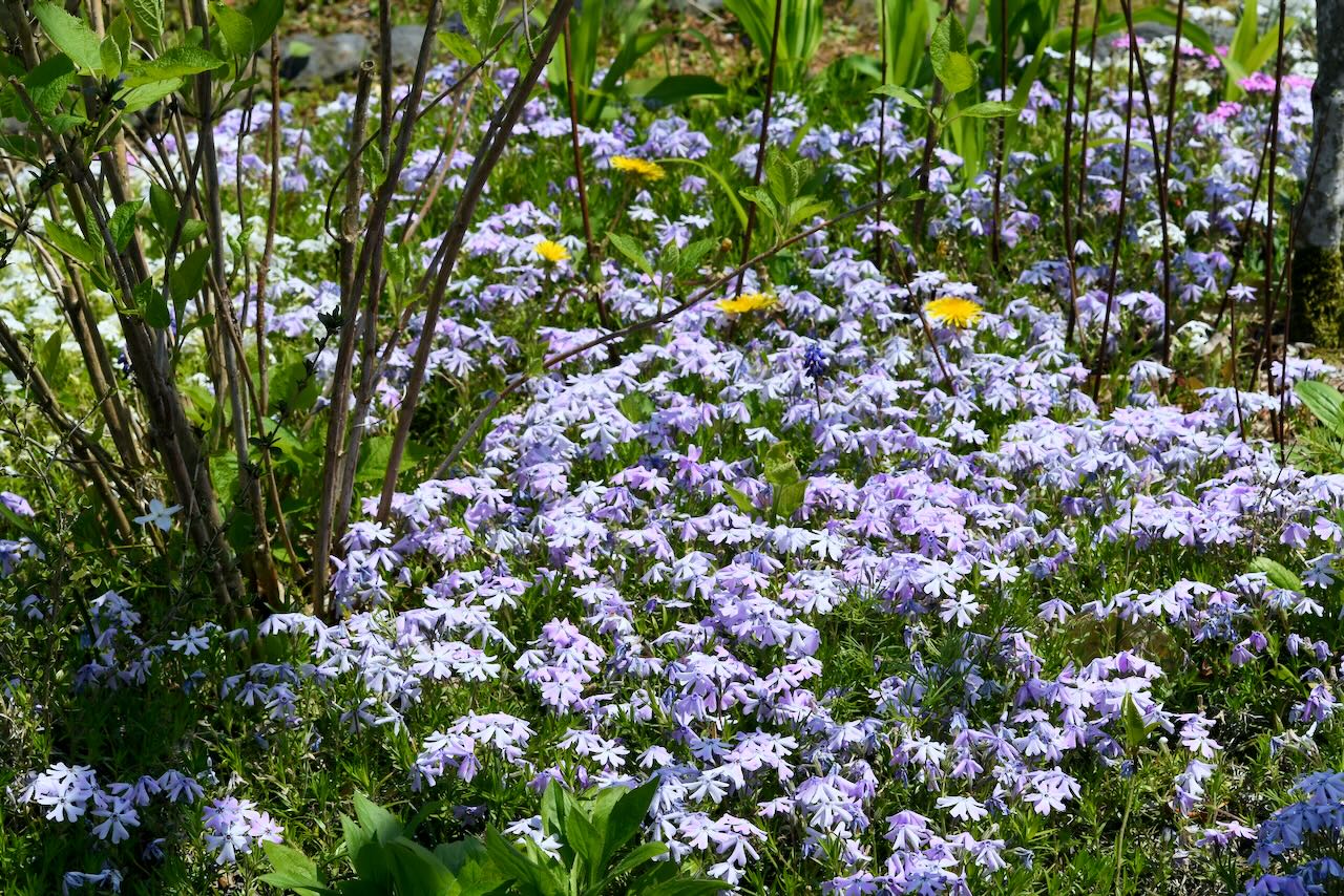 春の安田邸の庭です。色とりどりの芝桜がきれいです。