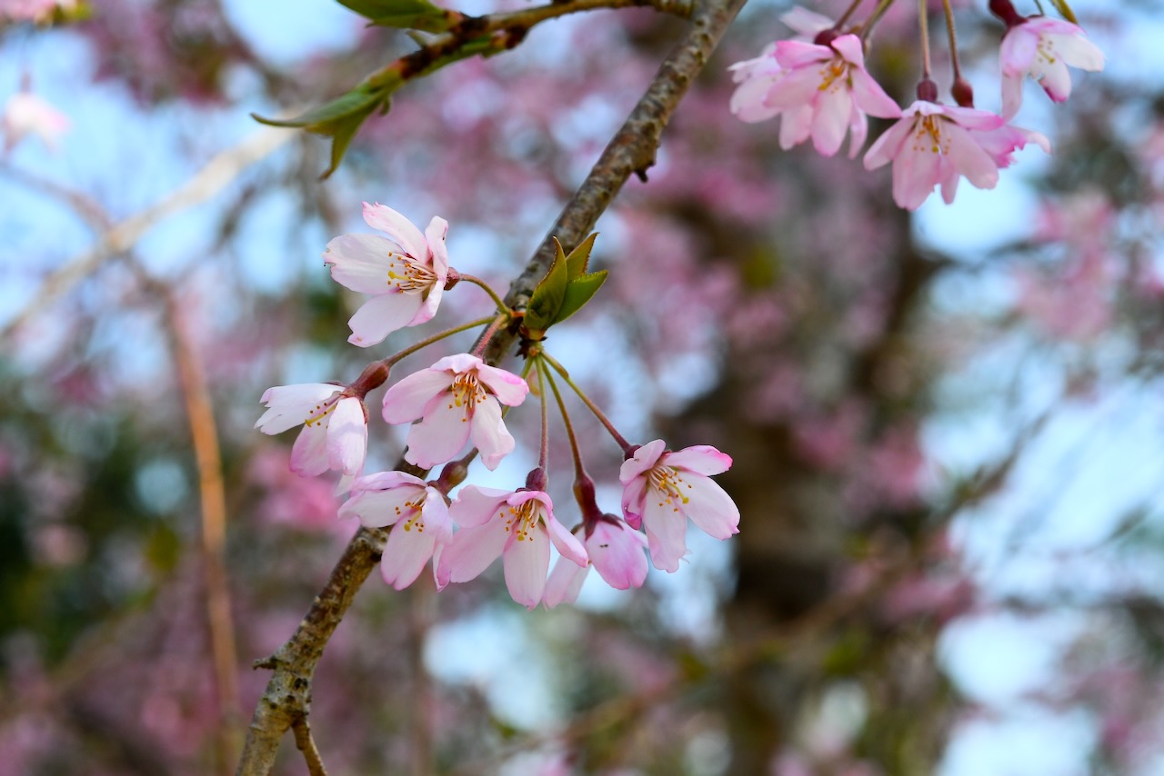 自然霊園の枝垂れ桜です。ここの桜はピンク色が濃く可愛らしいです。