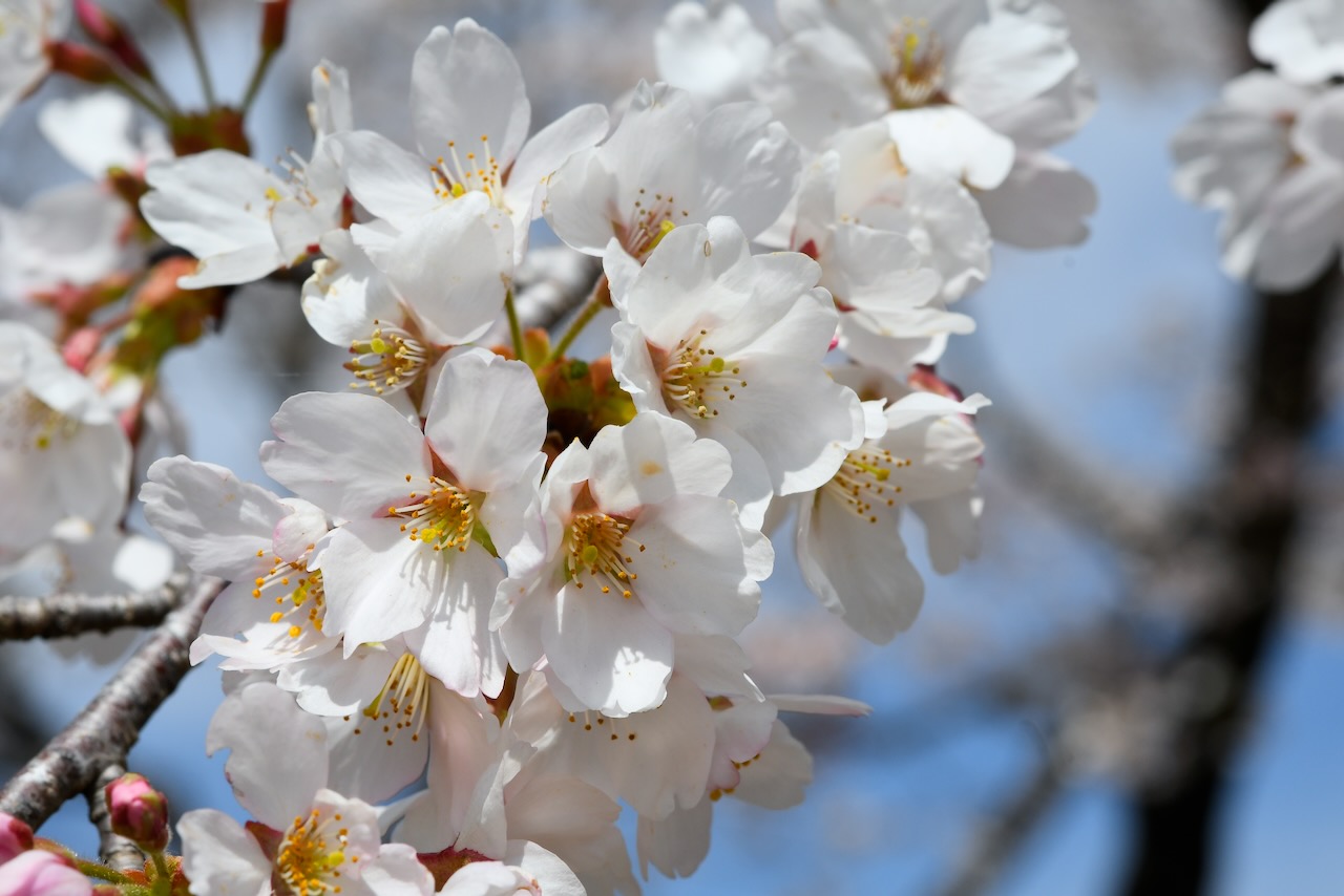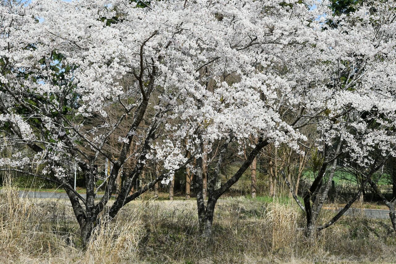 P2駐車場の外周道路近くに咲く白い桜です。