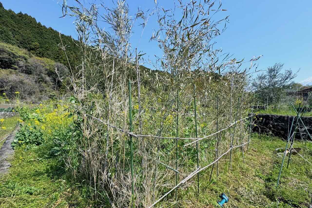 高い竹を差し込みました。これでまだ伸びても余裕です。