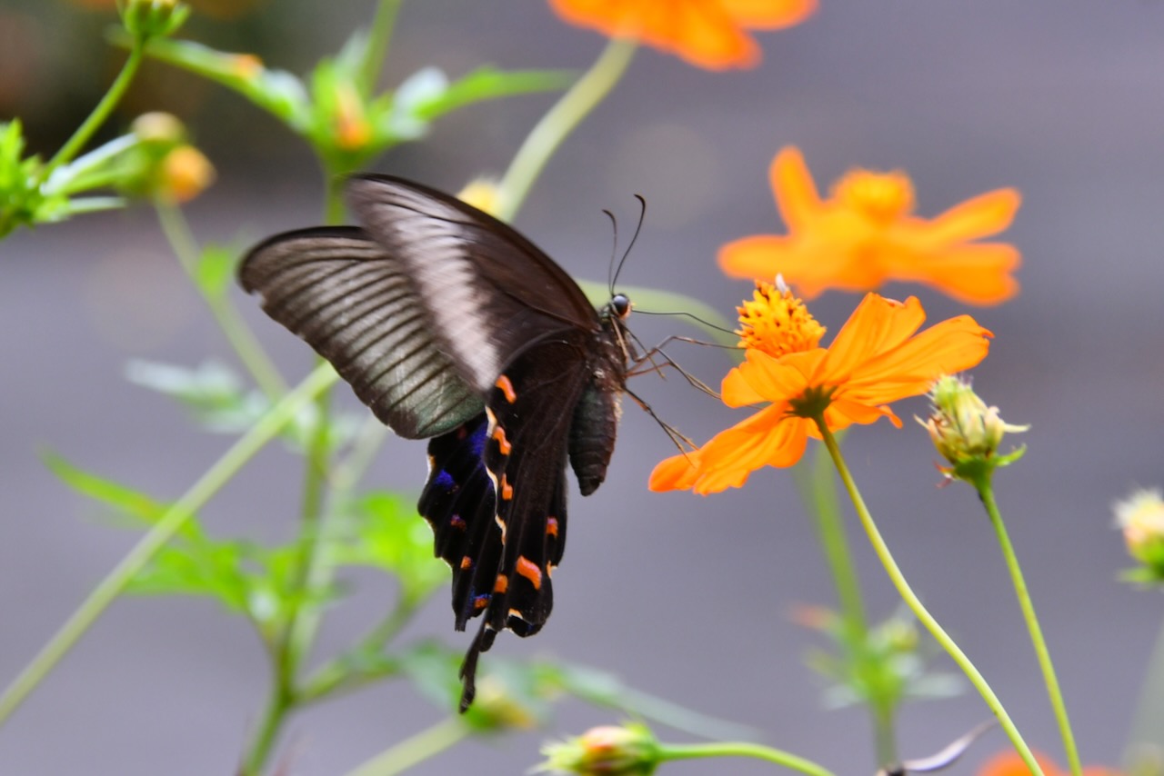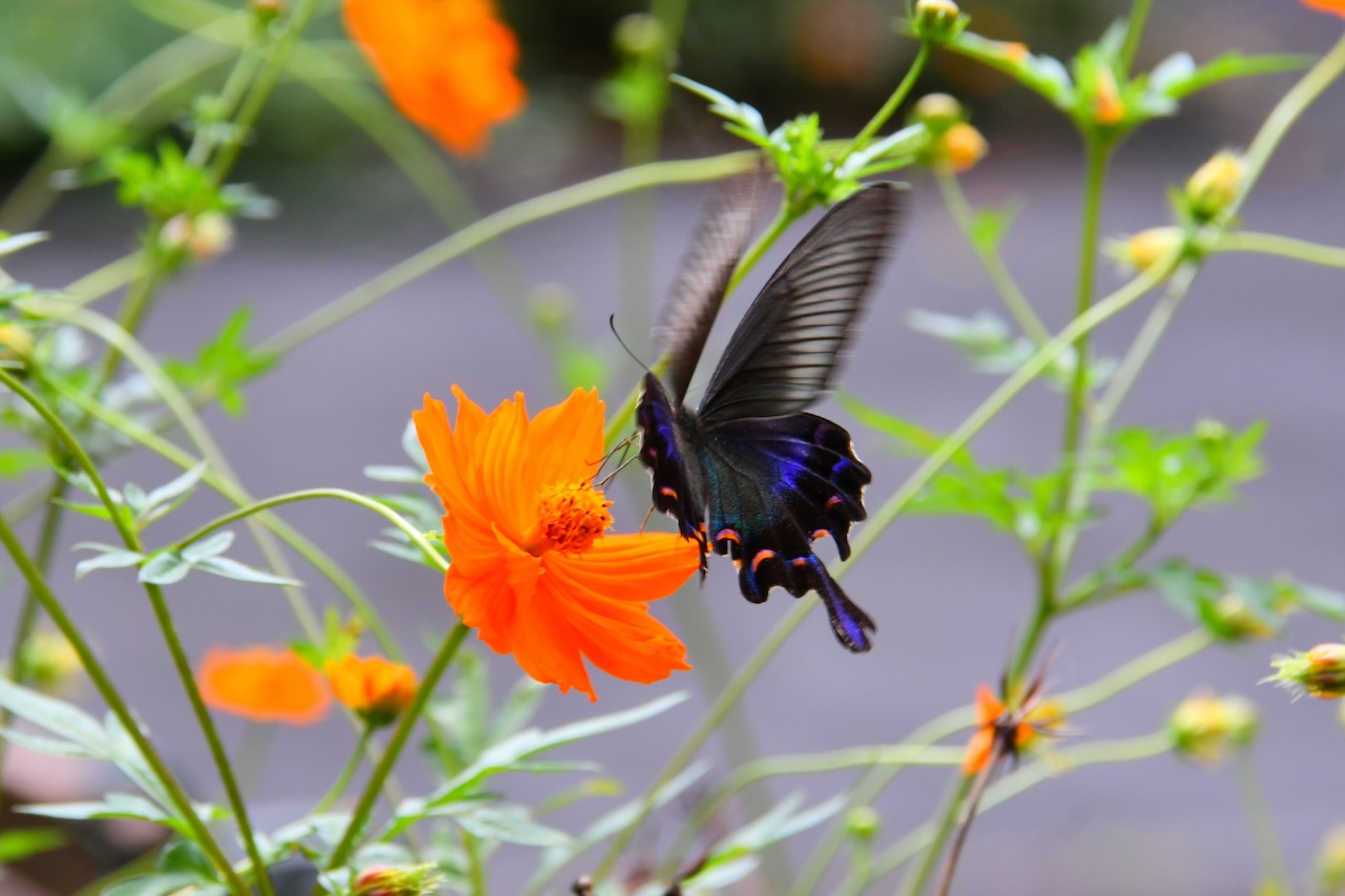 10分だけ撮影しました。エコトイレの前の花壇にいつも飛んでいるカラスアゲハです。