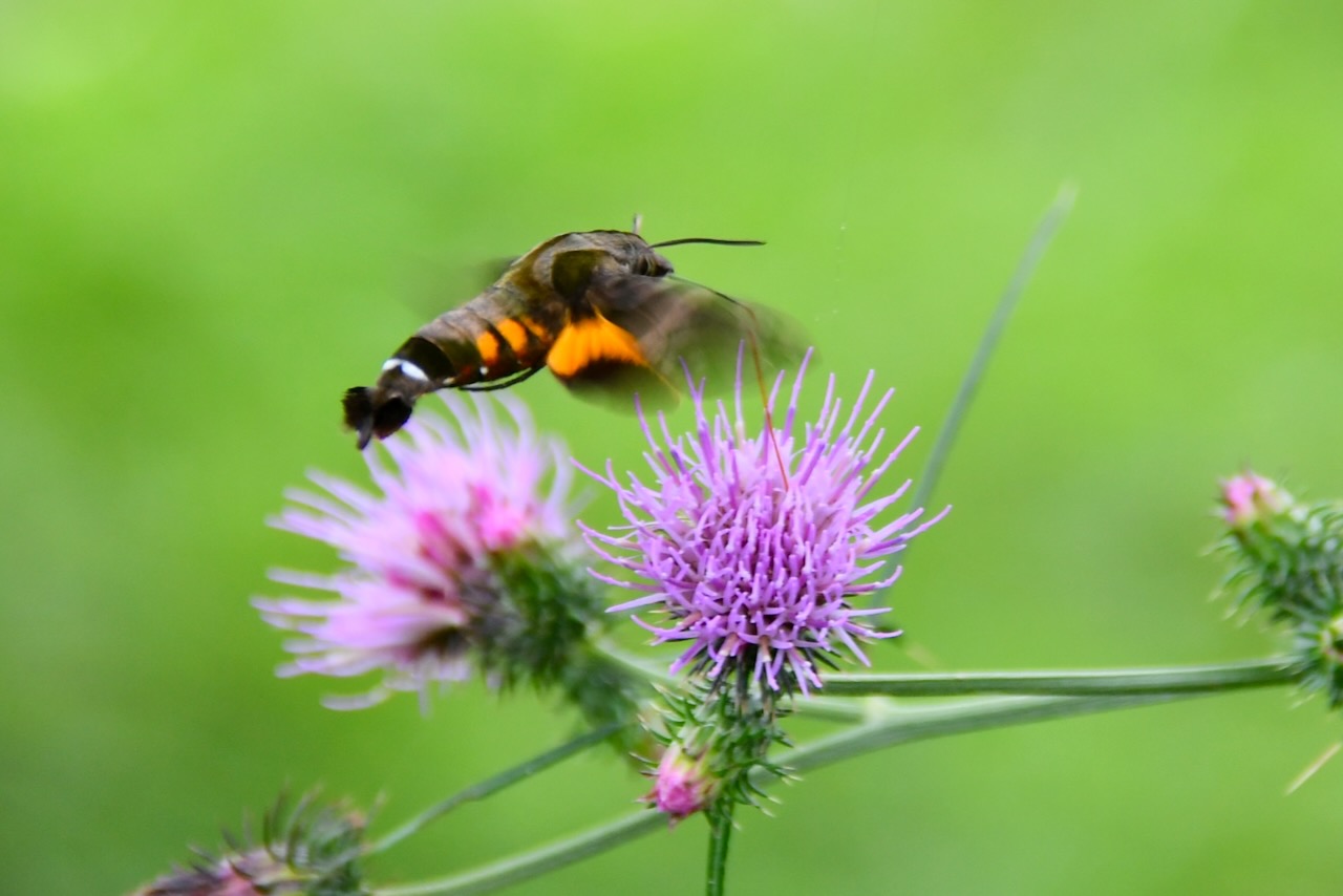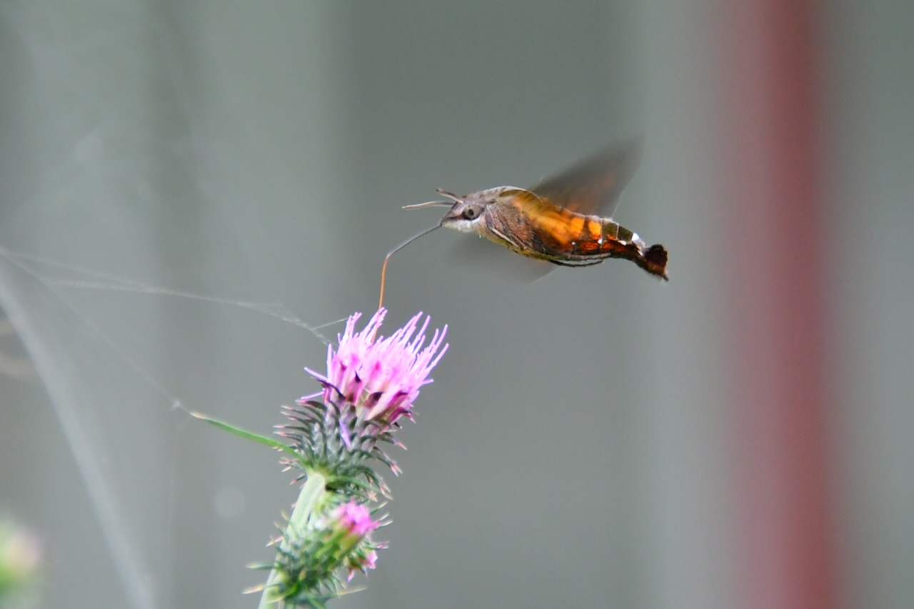 この季節にいつも見る、ホウジャクです。ハチドリと間違える人も多いですが、スズメガの1種です。羽をものすごく回転させホバリングし長〜いストローのような口で蜜を吸います。