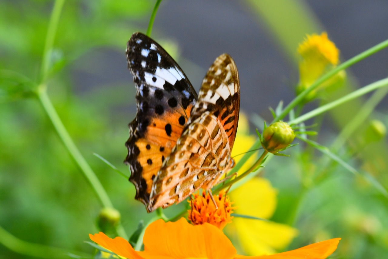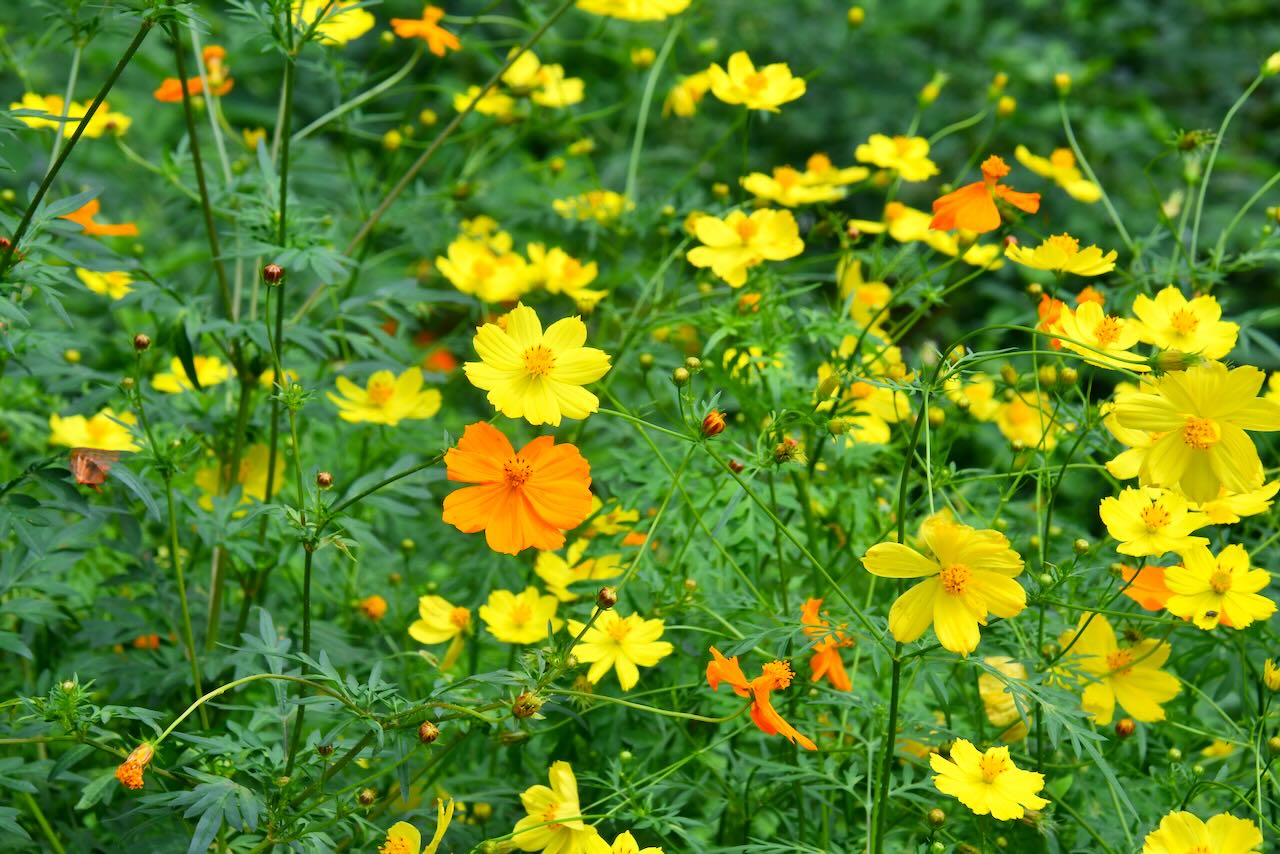 オレンジ色のキバナコスモスが好きでしたが、黄色いキバナコスモスと混じるとお互いがより美しく見えます。