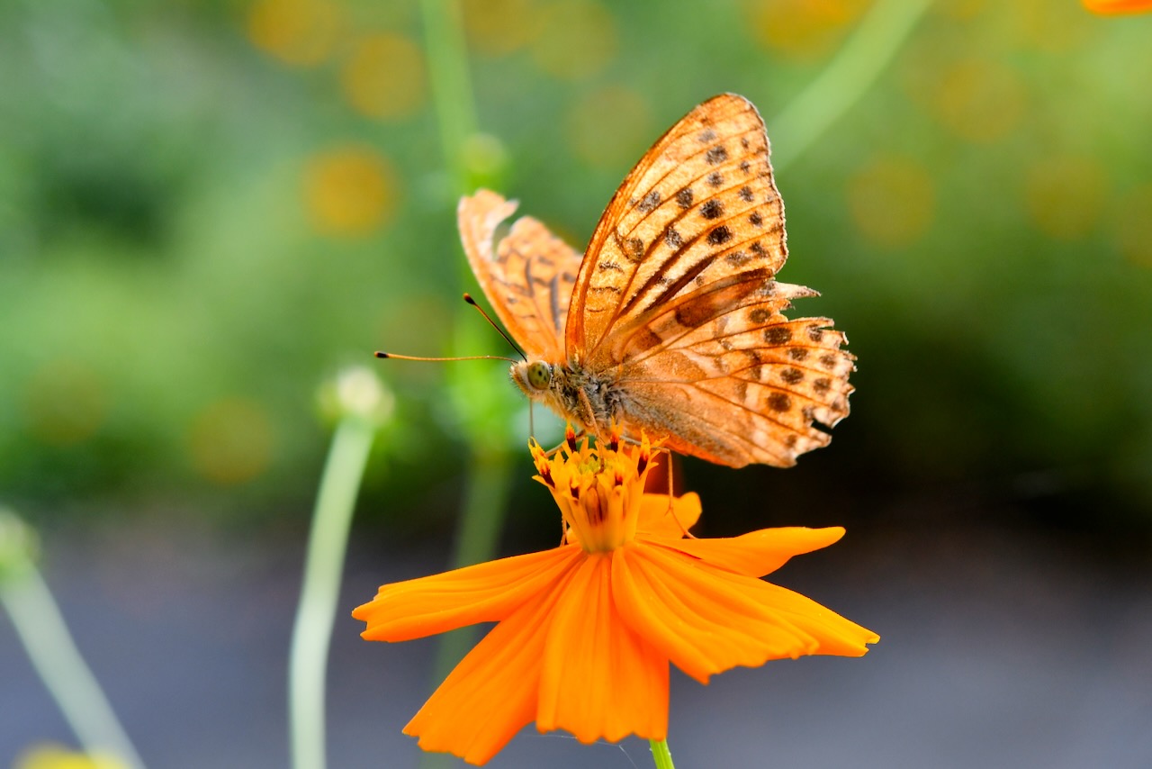 3分だけ時間をもらって撮影しました。ツマグロヒョウモンのオスです。羽が少しちぎれています。