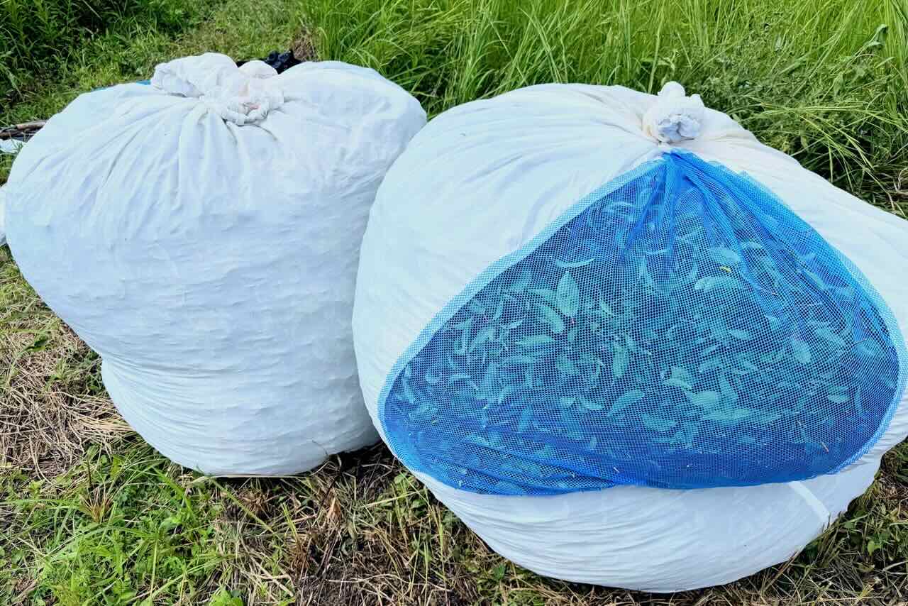 薄曇りの天気でしたが、少しでも乾いてもらうために広げました。太い枝は乾燥しにくいので取り除いています。