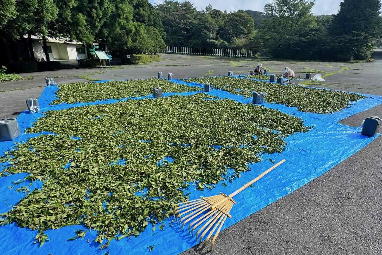 刈り取った後はスッキリしてきれいです。すぐに茶葉を富士聖地に運んで干します。