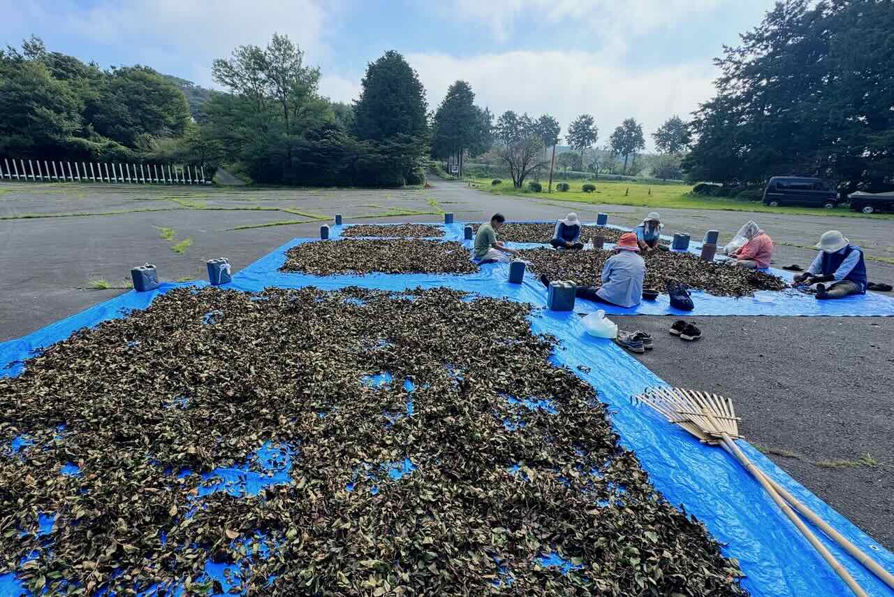 翌日の15日は曇り時々雨だったので、柳田さんと2人で富士聖地に行き、部屋の中に干している茶葉の枝を3時間だけ取り除きました。