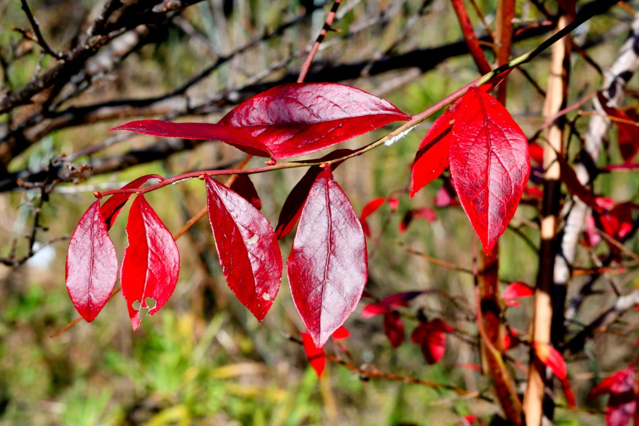 ブルーベリーの葉が真っ赤に紅葉していました。