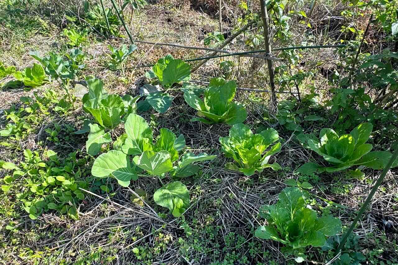 3段目の私と柳田さんが担当する畝です。キャベツと白菜です。