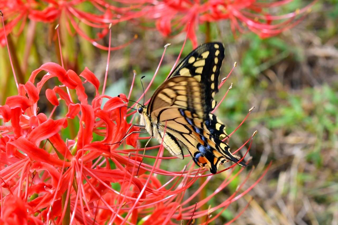 ヒガンバナにキアゲハがきれいです。