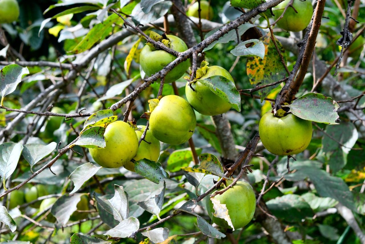 まだまだ青い柿の実ですが、食べられそうな子が何個かありました。