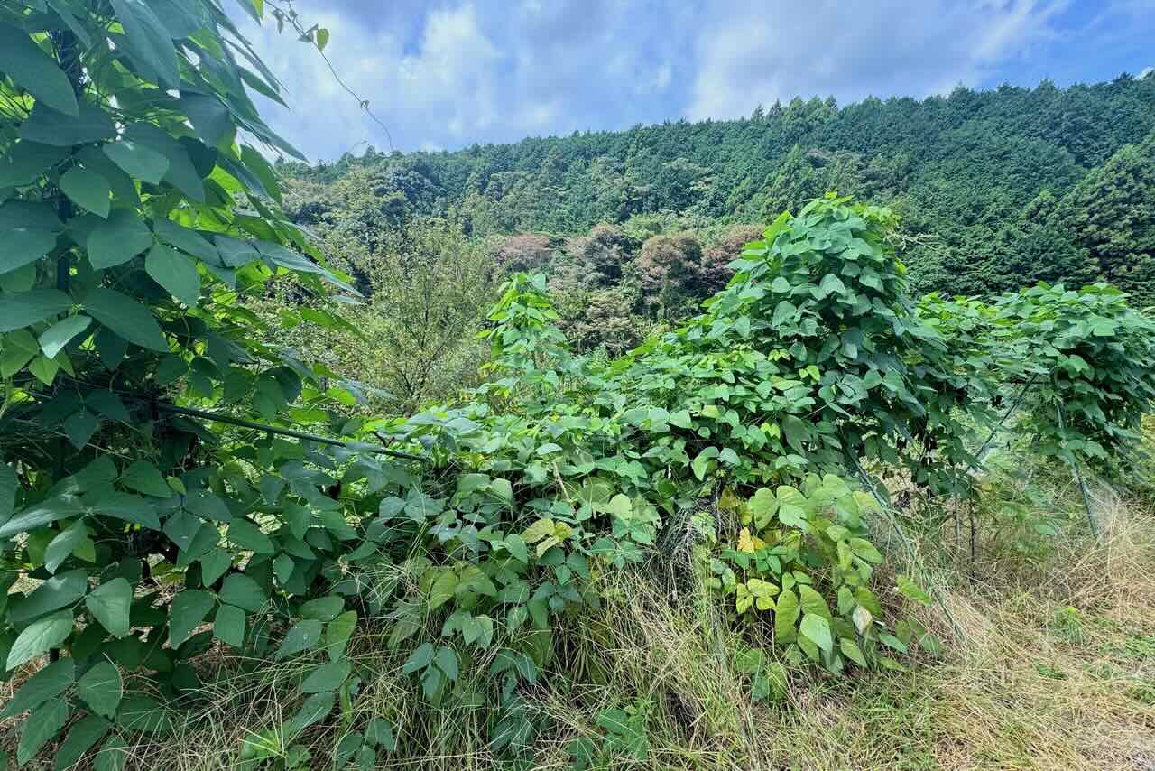 28日、淑さん、柳田さんと3人で、サニーレタスとハクサイの苗を車に積んで、精進川の畑に行きました。駐車場奥のムクナ豆の支柱が一部崩れていました。