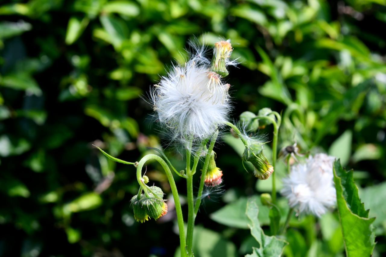 ベニバナボロギクです。この状態になってしまうと、触るとタンポポのようにバラけて飛んでしまいます。