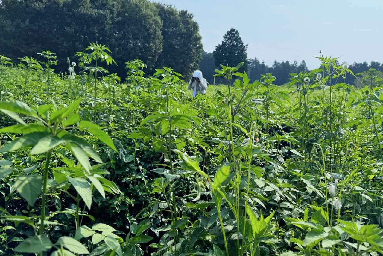 この後、4人でモーニングを食べに行きました。塩谷さんとは久しぶりです。塩谷さん以外の3人は保冷バックに入れて持ってきた凍ったタオルを頭の上に乗せたり首に当てたりしました。店員さんが何回も冷たい水を補充してくれました。塩谷さんは爽やかな笑顔を浮かべてスッキリした表情で元気です。この差はなんなのでしょう。なんと塩谷さんはモーニングの後、個人で借りている2カ所の畑に行き3時間も草刈りをしたそうです。全然疲れなかったそうです。そして私たちが冷たいタオルを頭に乗せているのを見て、そんなに暑かったかなあ、私は暑くなかったけどと思ったそうです。塩谷さんは農業歴が20年近いです。手袋があまり好きではなく土に直接触ります。もちろんトゲがある植物の場所は手袋をしますが、基本私達よりも土に触れ自然のエネルギーを取り入れてきた年数が長いです。その辺に違いがあるのかなと思います。