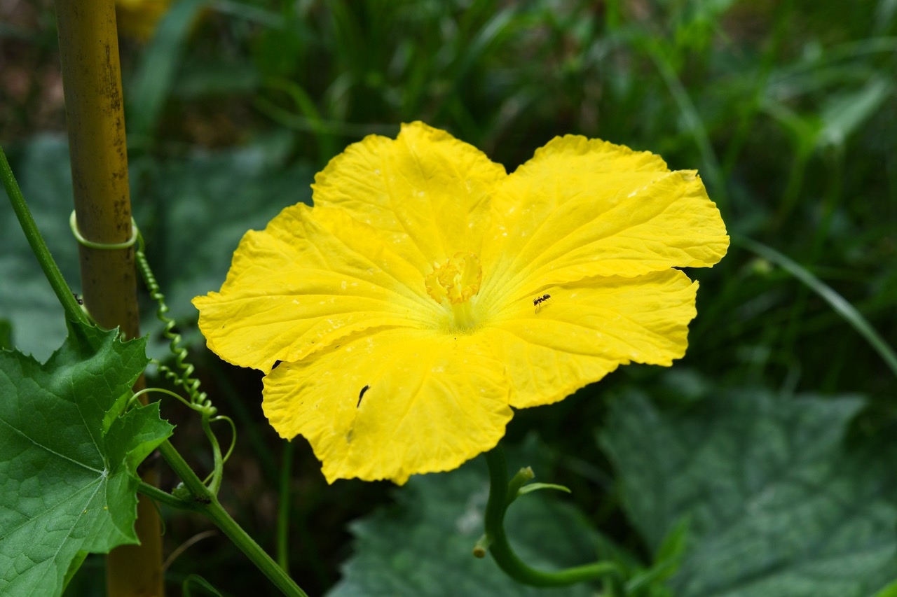 精進川畑の草刈り・ヘチマに小さな実がなりました