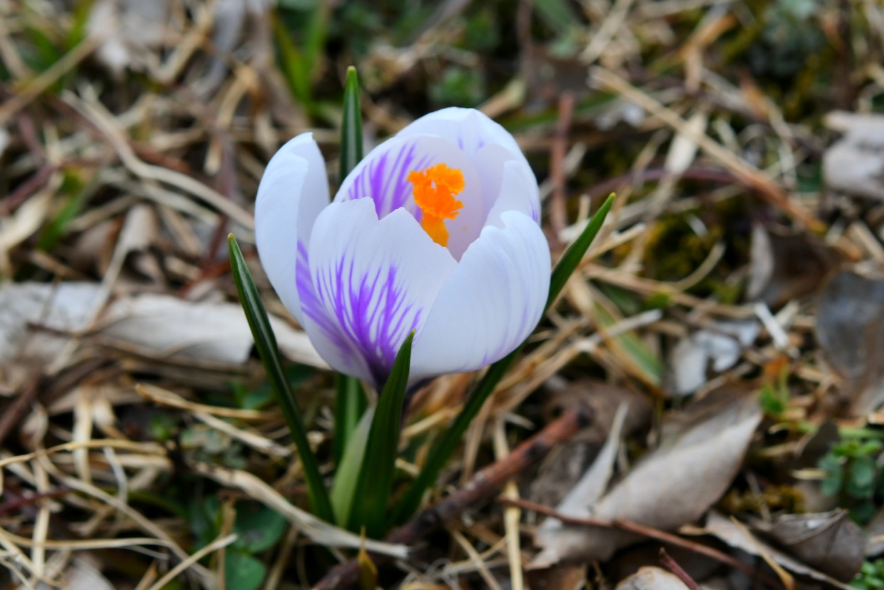 帰りに富士聖地に寄りました。クロッカスが出ていないか見ると出ていました。いつも別館道場の近くのロウバイの下に咲きます。