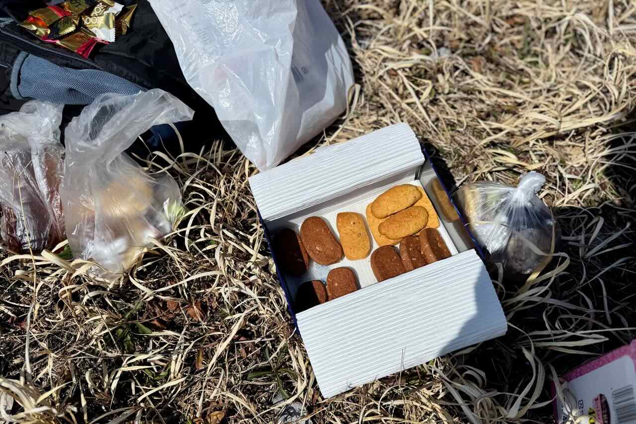 9時半から12時半の3時間で終わりました。塩谷さんが手作りの米粉のクッキーを作って来てくれました。もうすでに分けた後ですが、皆んなこのクッキーが大好きです。他にも女性陣が持ってきたチョコや煎餅などを8袋に分けて配りました。