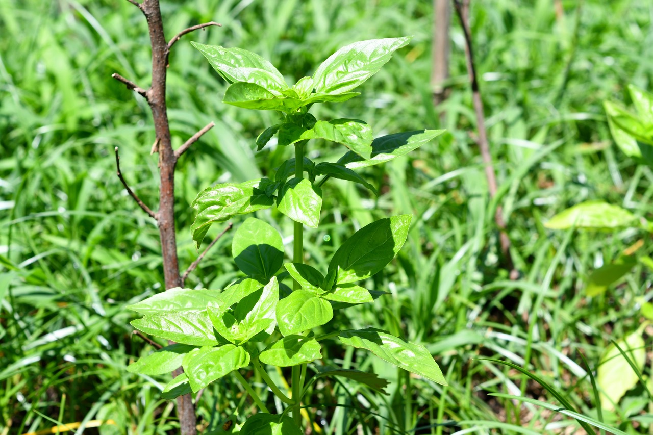 イチジクの隣にはバジルを植えています。