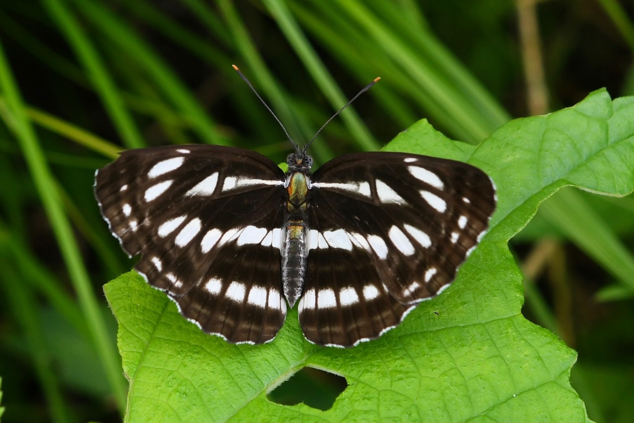 棚の近くにコミスジが止まっていました。良く見たら、胴体に赤や緑の色がついています。