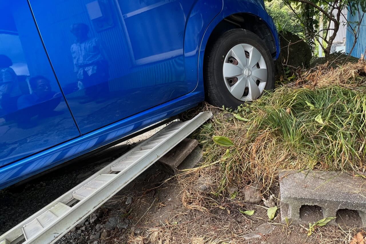 11時半頃に地主さんのお姉さんが帰って来て、JAFを呼びました。そしてJAFが来たのが12時40分です。私たちもJAFを呼んだらとは言ったのですが、お孫さんはどうしたらいいのかわからず家に入ってしまったので話が良くできませんでした。ちゃんと話をして、JAFの番号を伝えるか呼んであげたらもっと早く解決したと思います。でも彼女も車も無事で良かったです。