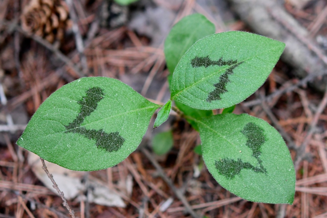 毎年良く見る葉っぱなのに名前が出てきません。家に帰ってから調べるとミズヒキでした。面白い模様です。