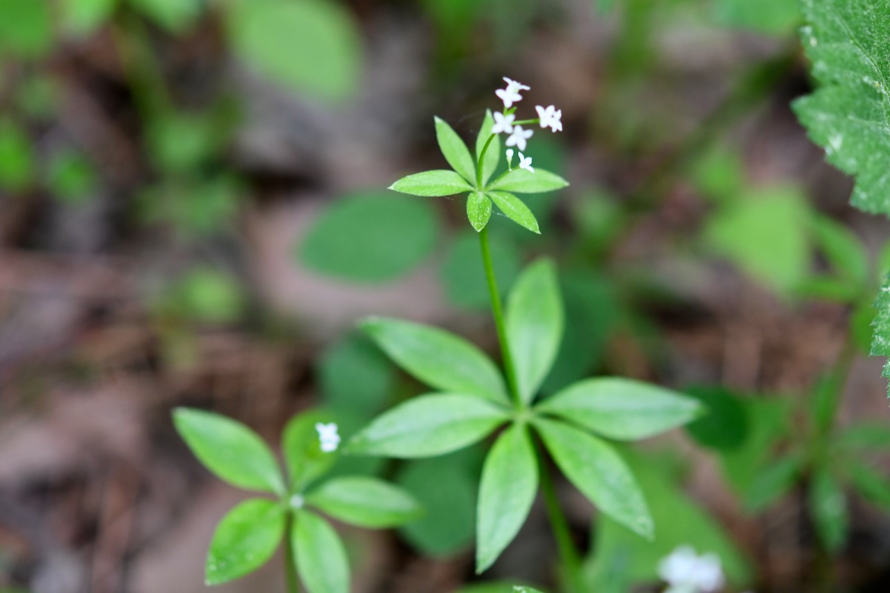 2mmくらいの花です。間違っているかもしれませんが調べるとヤツガタケムグラだそうです。