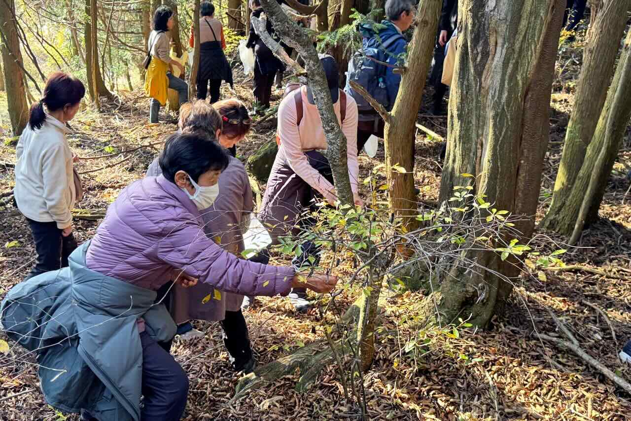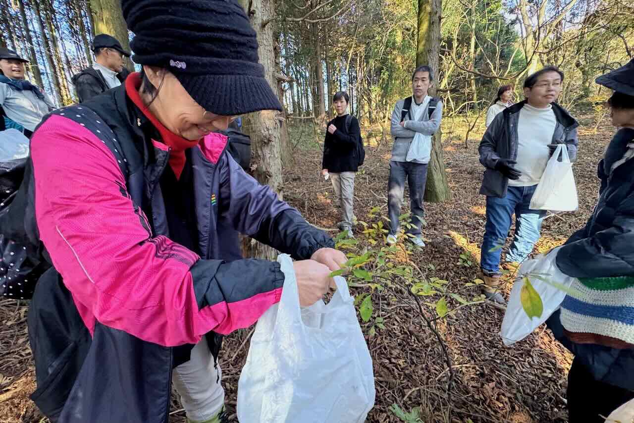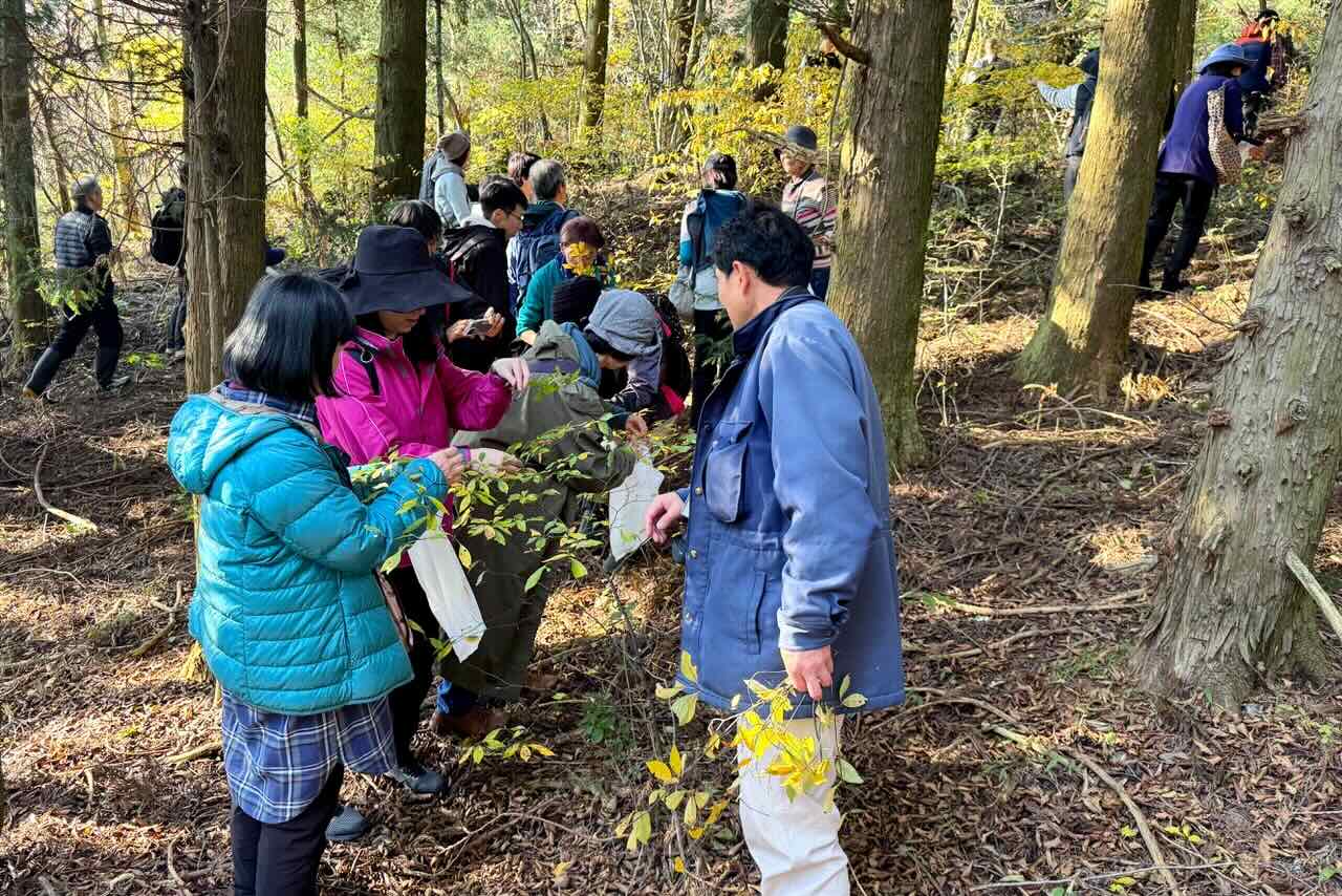 途中、クロモジの幼木から若木が群生している場所で、皆さんに枝を取っていただきました。