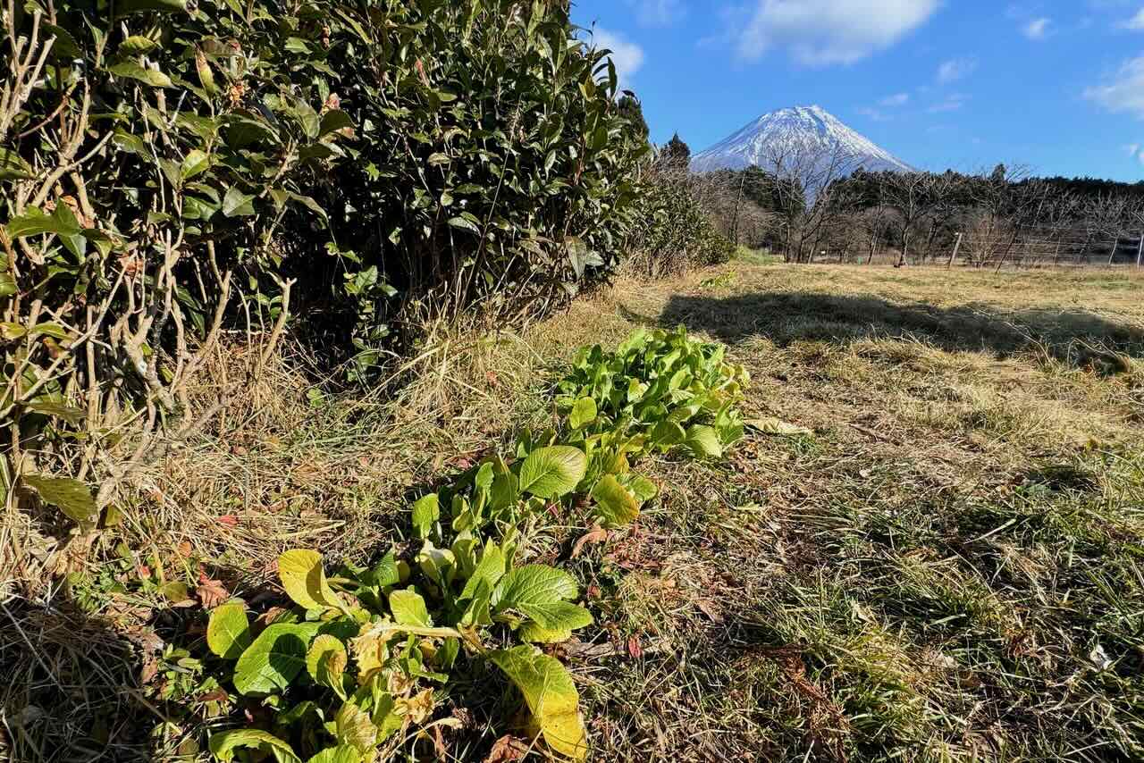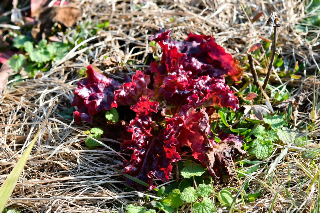 何回も霜が降りたと思いますが、茶の木の横に蒔いた野菜のうち、小松菜が残っていました。サニーレタスも小さい子がいました。