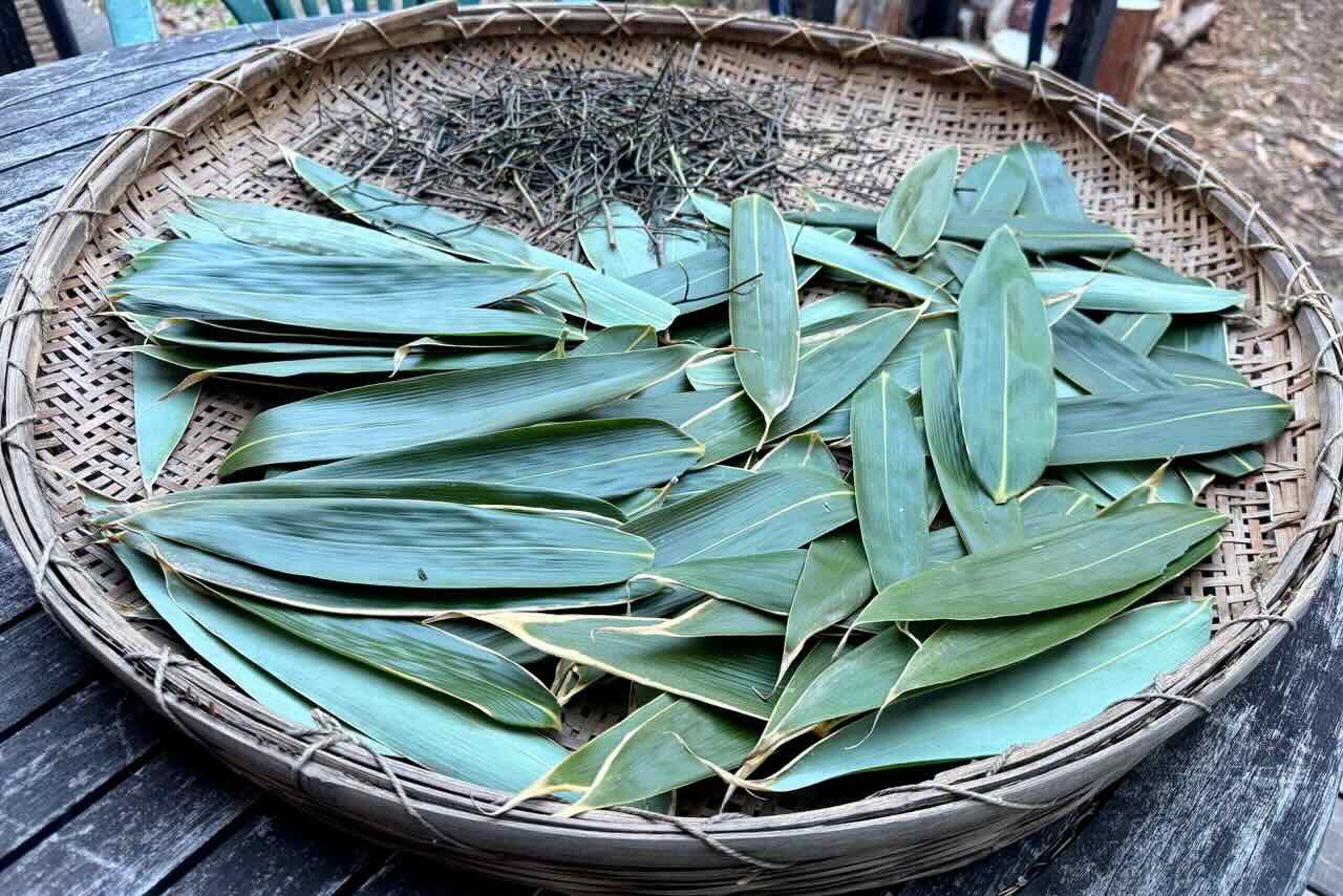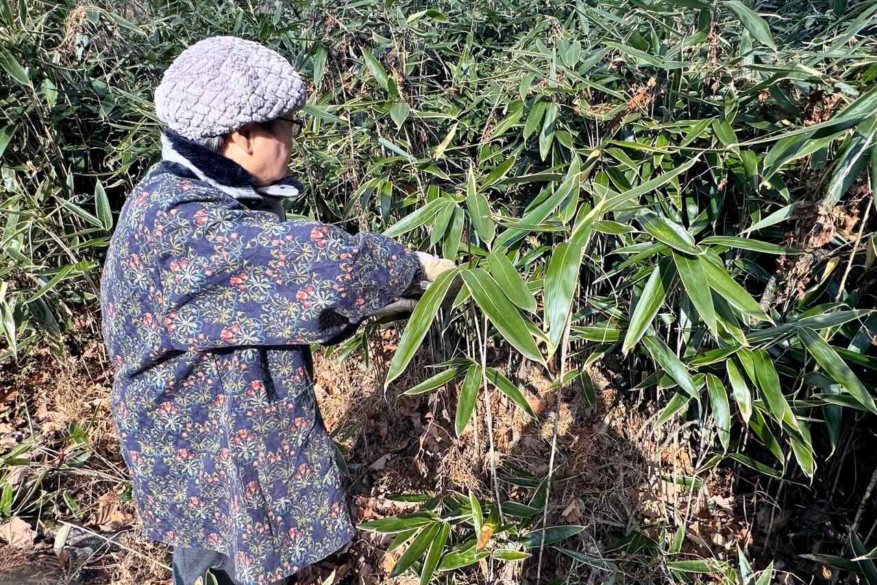 17日は宝山に丸太を取りに行き、ついでにクマザサと黒文字の枝を少し取りました。これら野草のお茶はスッキリさっぱりした美味しさですが、これを私達の茶葉に入れると、さらに美味しくなると皆んなが言いますし、私もそう思います。それでこれらを乾燥させてブレンド茶の試飲をします。この日は最低気温がマイナス5度だったので、柳田さんは帽子をかぶっています。