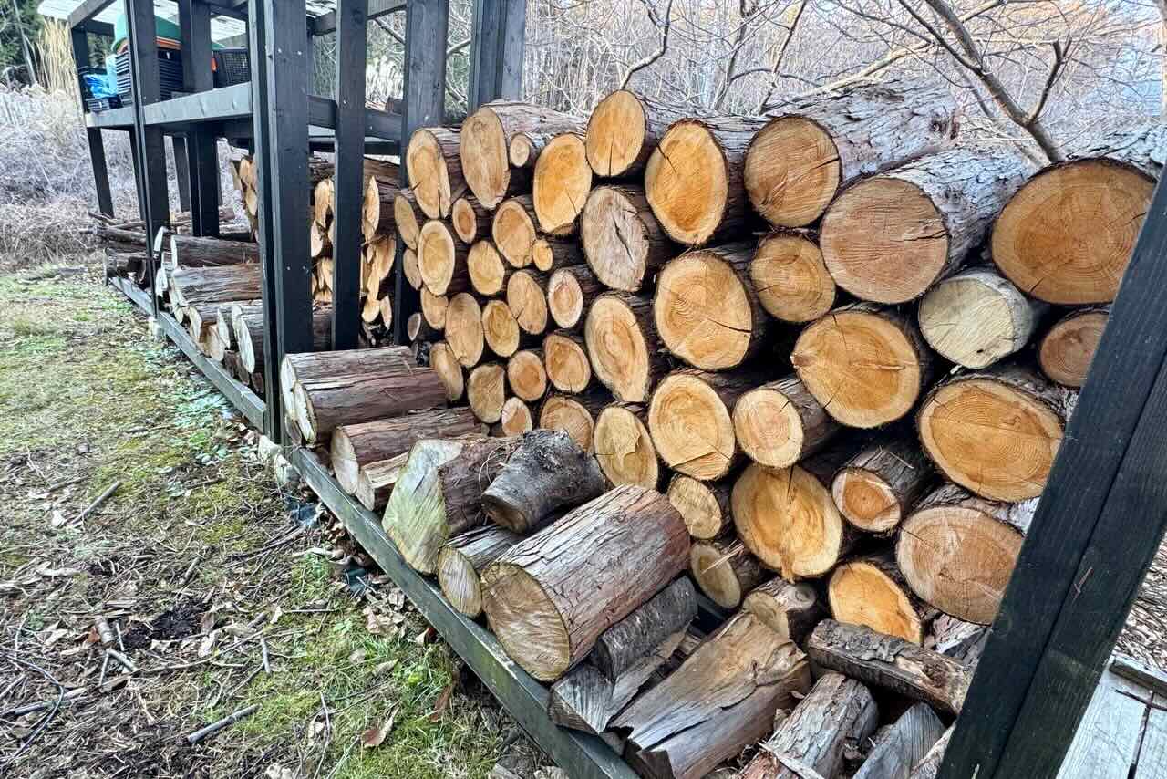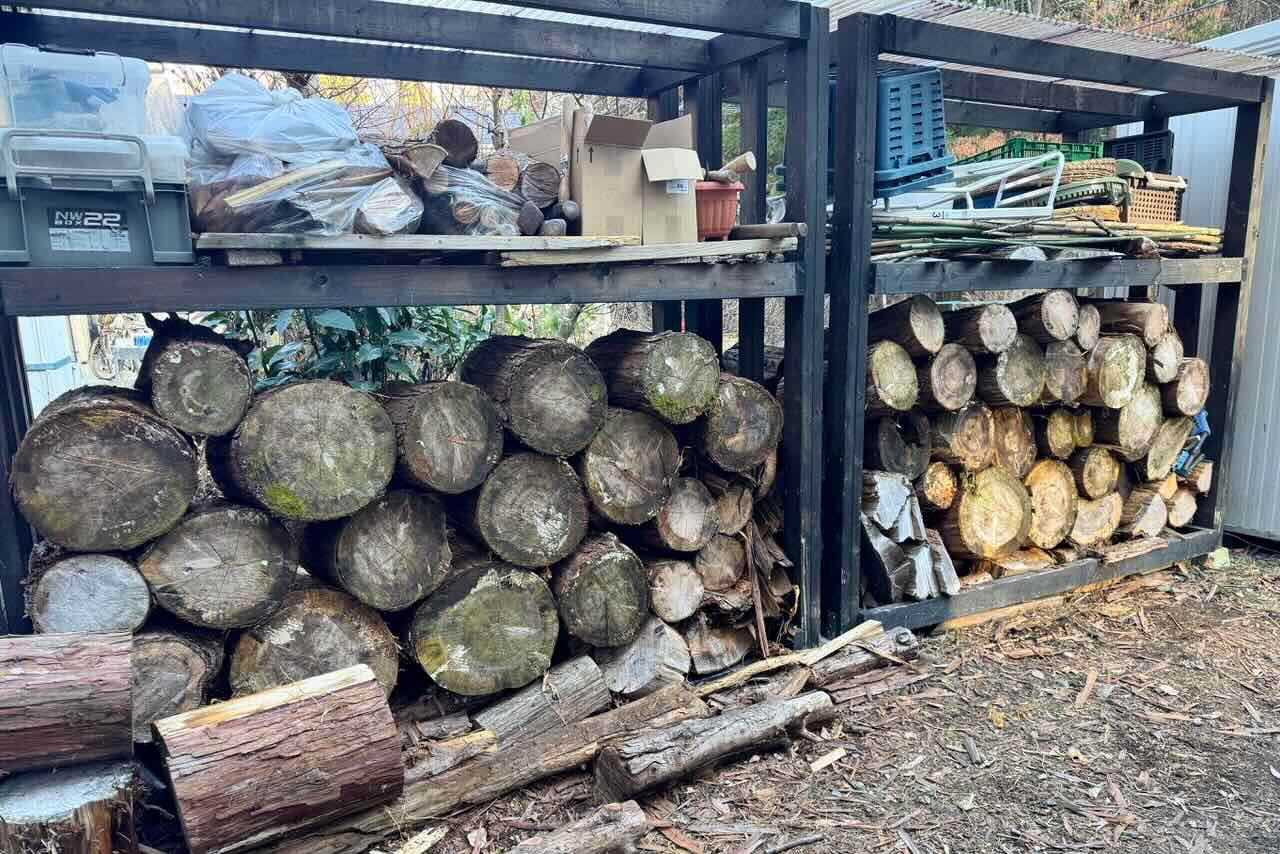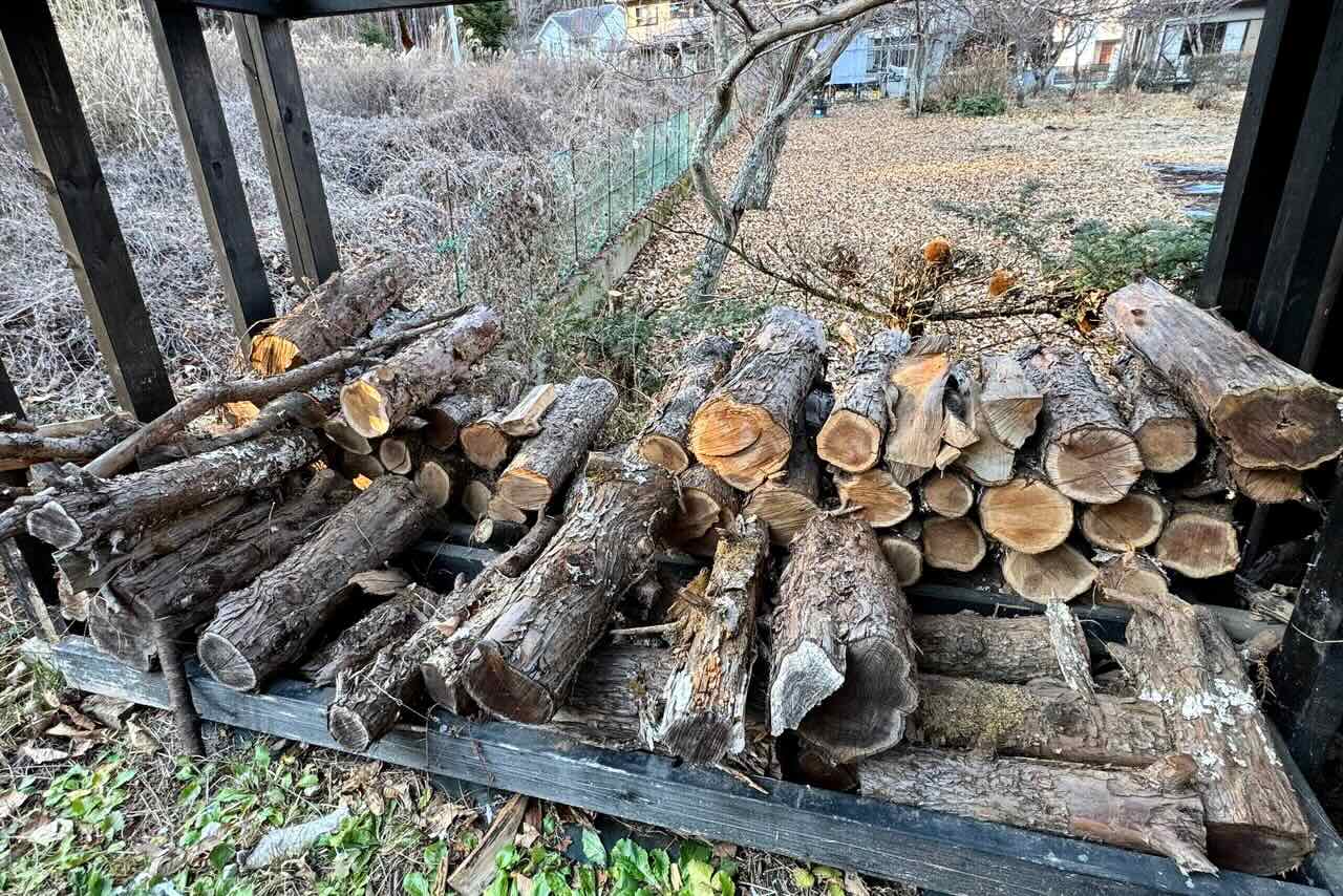 上樹庭苑さんに声をかけると、何年も前の薪があるからあげるよと言ってくださいました。軽トラック一杯分くらいだそうです。処理に困っていたからちょうど良いと言われて、来年1月中旬にいただけることになりました。ありがたいです!またこの小屋をいっぱいにしたいです。